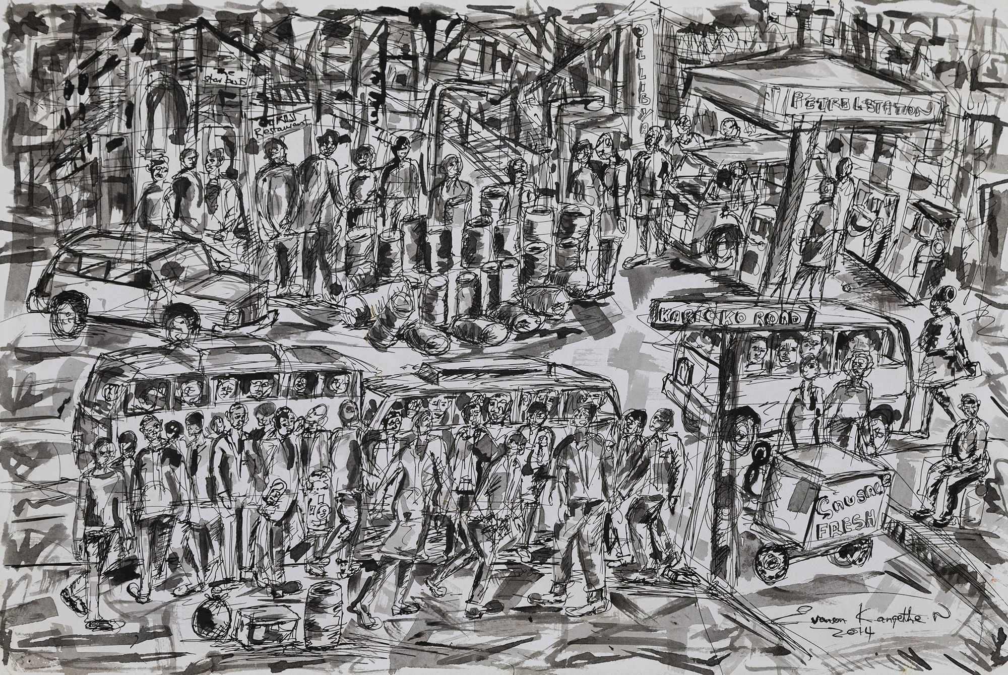 Signed ‘Evanson Kang’ethe 2014’ (lower right)